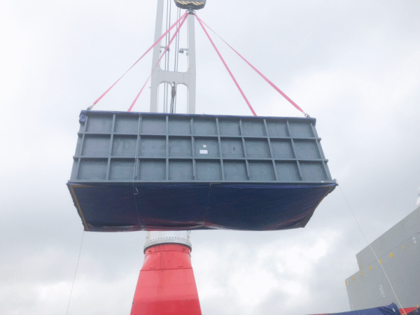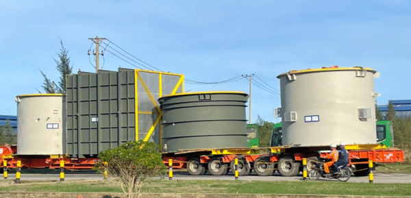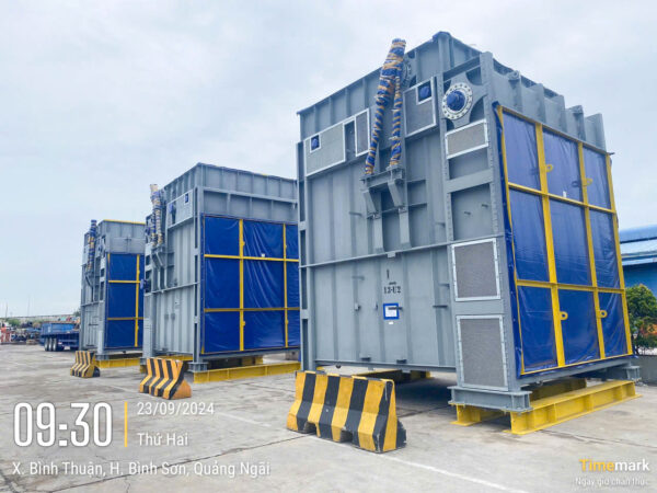 - Phạm vi công việc: Cung cấp vật tư, gia công chế tạo, thực hiện kiểm tra khả năng chịu tải cho Khung nâng (phục vụ công tác lắp đặt hệ thống thu hồi nhiệt HRSG) và vận chuyển (DAP) tới cảng Massan, Hàn Quốc (Sản phẩm được gắn dấu CE)