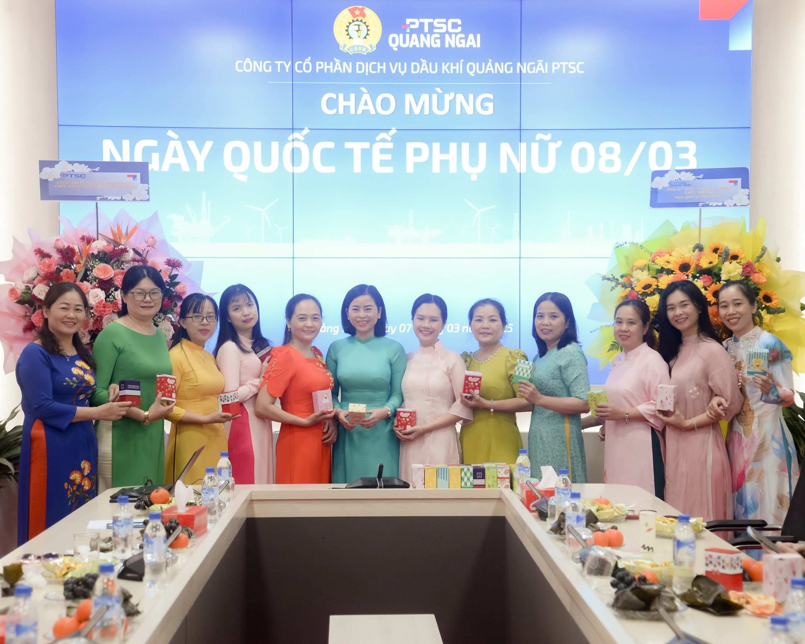 Tham dự Chương trình có sự hiện diện của các đồng chí trong Ban chấp hành Công đoàn, các đoàn thể chính trị xã hội, lãnh đạo các Bộ phận trực thuộc Công ty và đặc biệt là sự hiện diện của tập thể nữ CBNV – những bông hoa xinh đẹp của PTSC Quảng Ngãi. Tại chương trình, Công đoàn cơ sở Công ty đã gửi tặng đến toàn thể Nữ CBNV một món quà vô cùng ý nghĩa với mong muốn một nửa thế giới luôn xinh đẹp và tự tin dù ở bất cứ nơi nào.