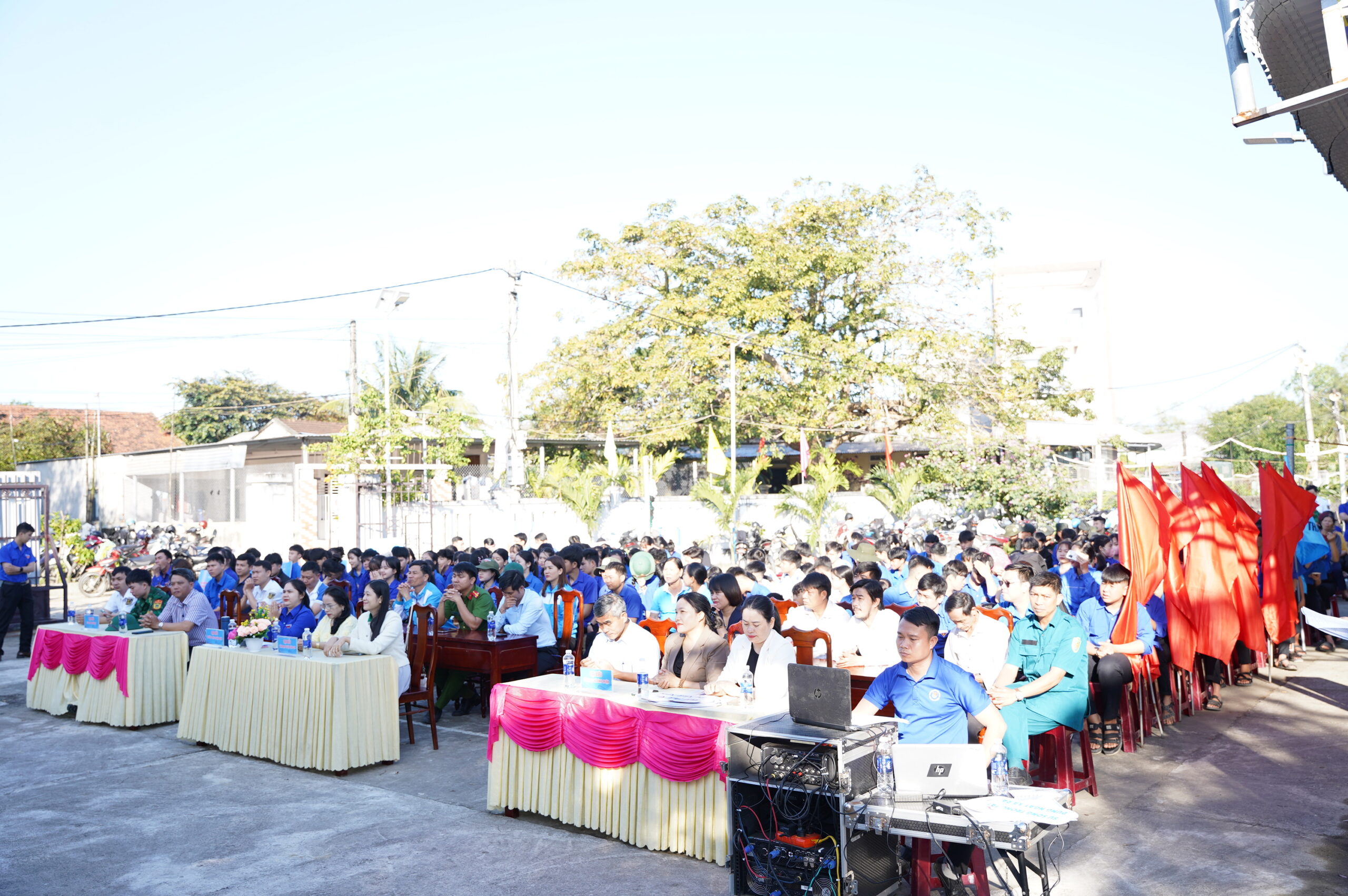 Đến dự buổi lễ có đồng chí Huỳnh Thị Hồng – Phó trưởng Ban Tuyên giáo và Dân vận huyện Bình Sơn, đồng chí Nguyễn Thị Hồng Sen – Phó Bí thư huyện đoàn Bình Sơn, Chủ tịch Hội Liên hiệp Thanh niên Việt Nam huyện Bình Sơn, cùng đại diện lãnh đạo các cơ quan, ban, ngành huyện Bình Sơn; lãnh đạo, đảng ủy, HĐND, UBND, UBMTTQVN xã Bình Thuận; các đồng chí là Ủy viên BTV, BCH huyện đoàn Bình Sơn, Bí thư các xã, thị trấn và đoàn trực thuộc huyện Bình Sơn; chi đoàn Cảng vụ Hàng hải Quảng Ngãi, chi đoàn Cục Hải quan tỉnh Quảng Ngãi, chi đoàn Đồn Biên phòng cửa khẩu Cảng Dung Quất, ĐTN PTSC Quảng Ngãi cùng hơn 200 đoàn viên, hội viên, thanh niên cùng các lực lượng tham gia tình nguyện thực hiện các công trình, phần việc tại Lễ khởi động Tháng thanh niên năm 2025.