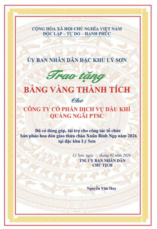 Tiếp tục đồng hành cùng địa phương trong công tác chăm lo đời sống văn hóa – tinh thần cho nhân dân, ngày 05/02/2026, ĐTN PTSC Quảng Ngãi đã trao tặng 50 triệu đồng cho UBND xã Vạn Tường nhằm hỗ trợ kinh phí trang trí và bắn pháo hoa chào đón Tết cổ truyền. Cùng ngày, ĐTN PTSC Quảng Ngãi tham gia chương trình nghệ thuật “Xuân yêu thương” do Hội Phụ nữ Công an tỉnh Quảng Ngãi tổ chức và hỗ trợ 5 triệu đồng cho chương trình “Mẹ đỡ đầu”, góp phần chăm lo, đồng hành cùng trẻ em mồ côi, giúp các em thêm niềm tin và nghị lực vươn lên trong cuộc sống.