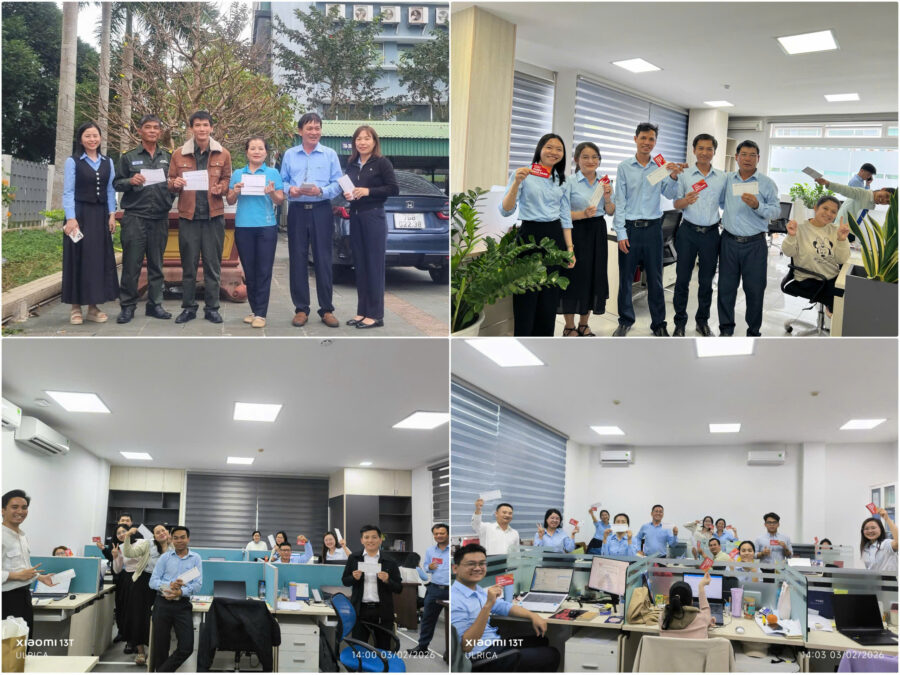 Song song đó, Công đoàn Công ty đã trao tặng voucher mua sắm trị giá 500.000 đồng cho gần 900 đoàn viên, người lao động; phối hợp Đoàn Thanh niên tổ chức “Gian hàng 0 đồng” trong chương trình “Bao lì xì nhân ái”, trao hơn 80 suất quà nhu yếu phẩm cho người lao động, đặc biệt là các trường hợp có hoàn cảnh khó khăn. Công đoàn cũng quan tâm hỗ trợ, bổ sung bữa ăn ca dịp Tết, góp phần nâng cao đời sống và sức khỏe người lao động tại các công trình, dự án.