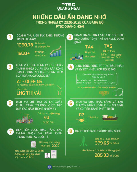 |INFOGRAPHIC| “Tự hào một chặng đường”: 08 dấu ấn nổi bật trong Nhiệm kỳ V của Đảng bộ PTSC Quảng Ngãi