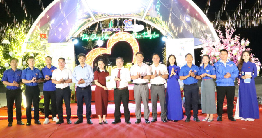 Mở đầu là chương trình “Thắp sáng ước mơ – Đối thoại tương lai” diễn ra tối 27/03/2026 tại phố đêm Sông Trà (đường Lê Hồng Phong, phường Nghĩa Lộ). Chương trình có sự tham dự của lãnh đạo phường Nghĩa Lộ, phường Trương Quang Trọng; đại diện lãnh đạo các đơn vị trong Cụm phối hợp Dầu khí miền Trung gồm: BSR, PTSC Quảng Ngãi, PVcomBank Quảng Ngãi, cùng hơn 400 đoàn viên, thanh niên và các em học sinh trên địa bàn. Không chỉ là một sự kiện phong trào, chương trình được thiết kế như một diễn đàn mở, nơi thanh niên trực tiếp tiếp cận những vấn đề chiến lược của ngành.